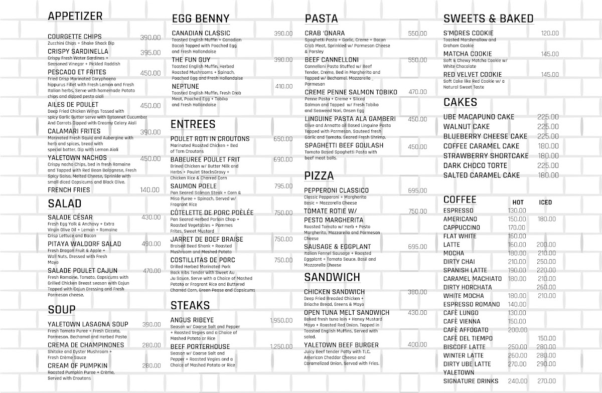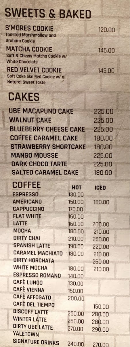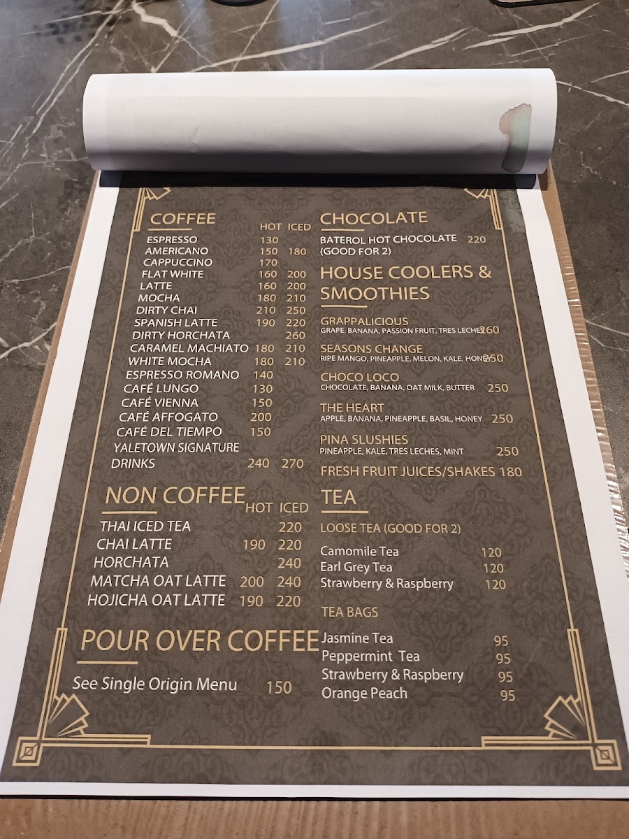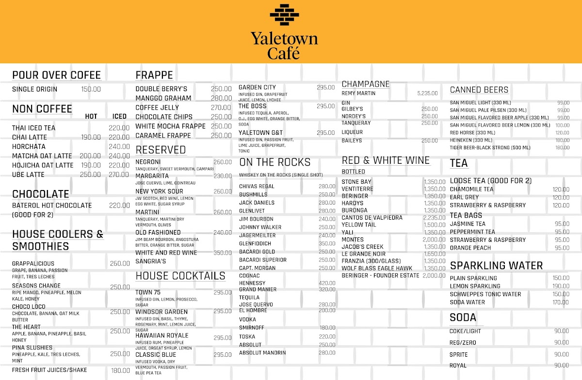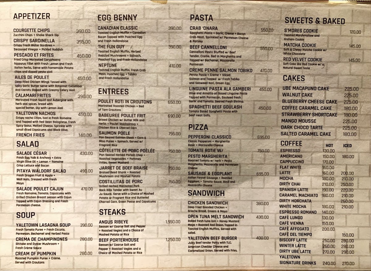From a reviewer’s perspective, the menu at Yaletown Cafe Tagaytay feels thoughtfully curated, balancing comfort food with café-style indulgence. The beverage selection stands out first, especially with crowd favorites like Caramel Macchiato, Cafe Lungo, and the aromatic Dirty Chai, which cater well to both classic coffee lovers and those seeking deeper, spiced flavors. Matcha fans are clearly well taken care of, with options such as Matcha Latte, Matcha Oat Latte, Hojicha, and even playful pairings like Matcha Cookies with Macchiato, creating a cohesive tea-forward experience that feels intentional rather than trendy.